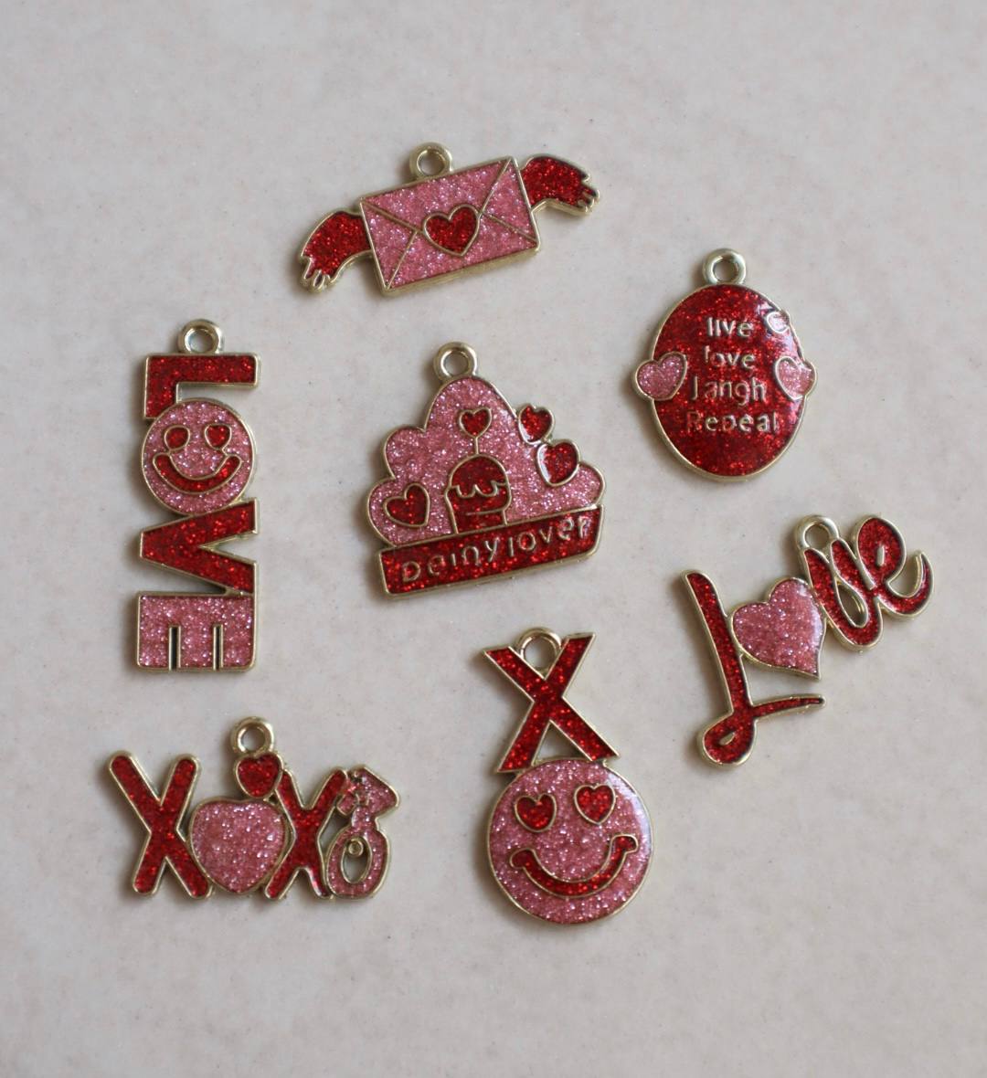 valentine charms, love charm pendant, glitter love charms, xoxo charm, valentine DIY charms, heart enamel charm, cute love charms, keychain charms valentine, valentine jewelry charms, raw materials for jewelry making, DIY craft material