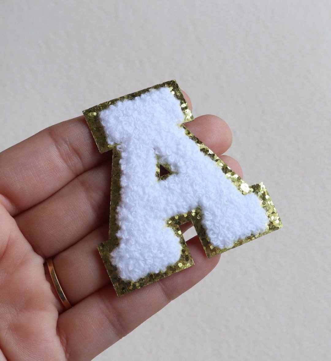 Fuzzy Chenille Letter Patch “A” – Glitter Border Alphabet Applique