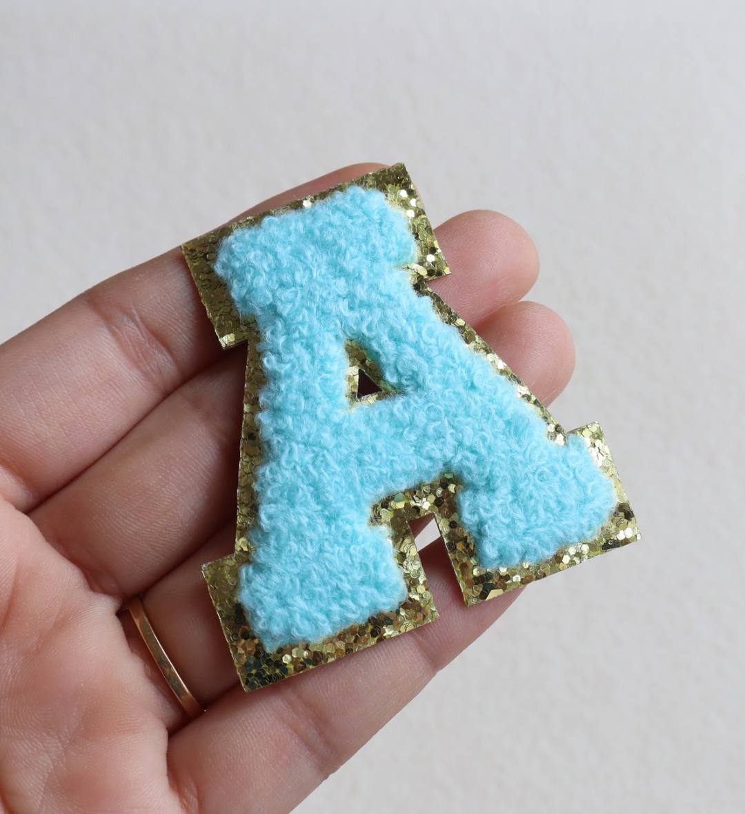 Personalize your outfits, bags, and accessories with this Colorful Chenille Letter “A” Patch. Designed with a soft, fuzzy chenille texture and finished with a sparkling golden glitter border, this patch is perfect for adding a trendy, customized touch. Available in pink, white, blue, and yellow, it’s ideal for jackets, t-shirts, backpacks, caps, or DIY crafts.