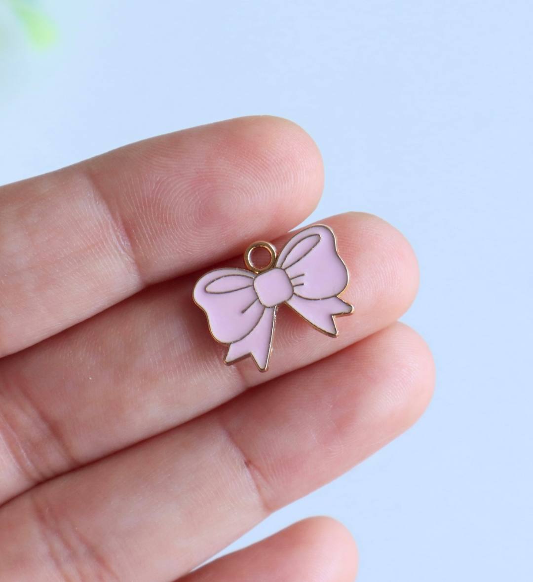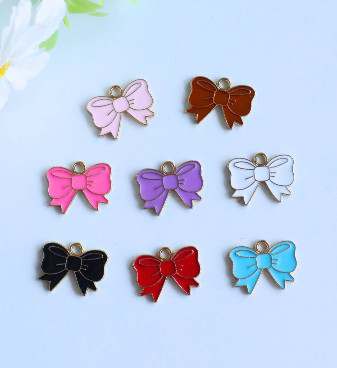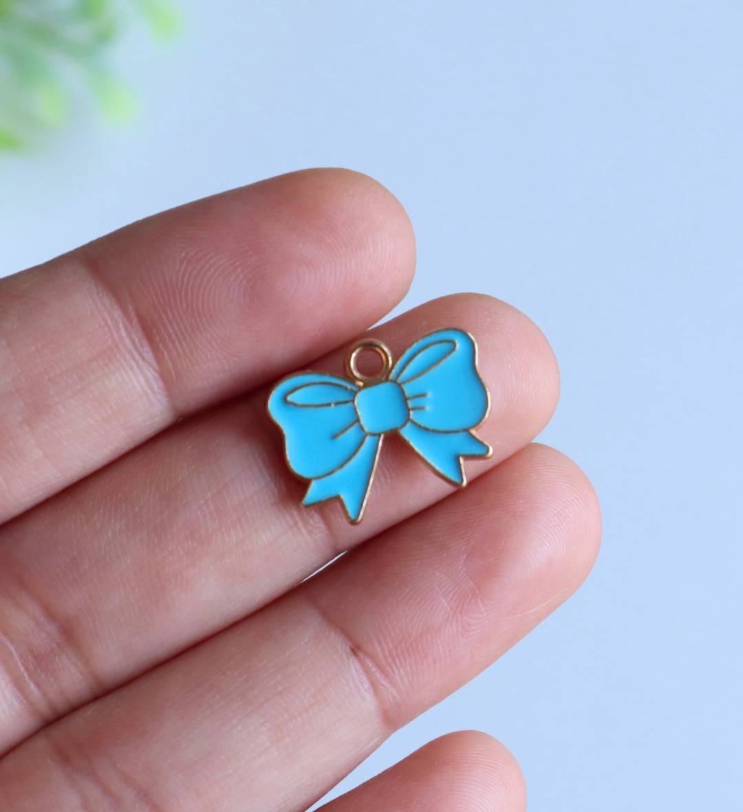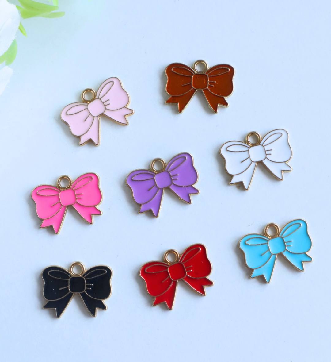 enamel bow charms, ribbon pendant charm, cute jewelry making supplies, DIY enamel pendants, colorful bow charm, gold bow pendant, handmade jewelry findings, kawaii craft charms, resin art supplies, pastel bow accessories, enamel ribbon charm, alloy jewelry charms