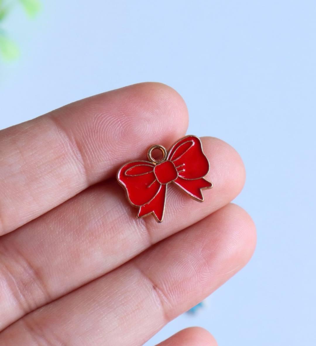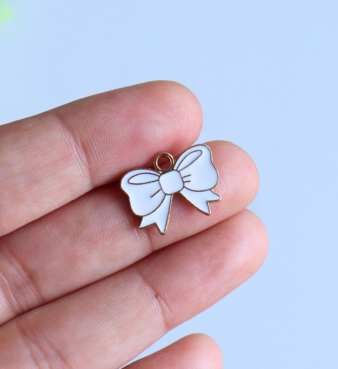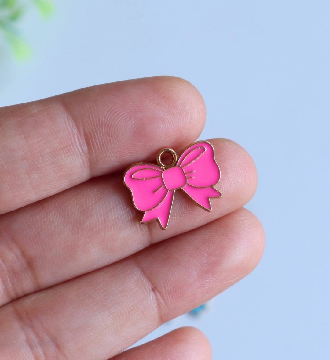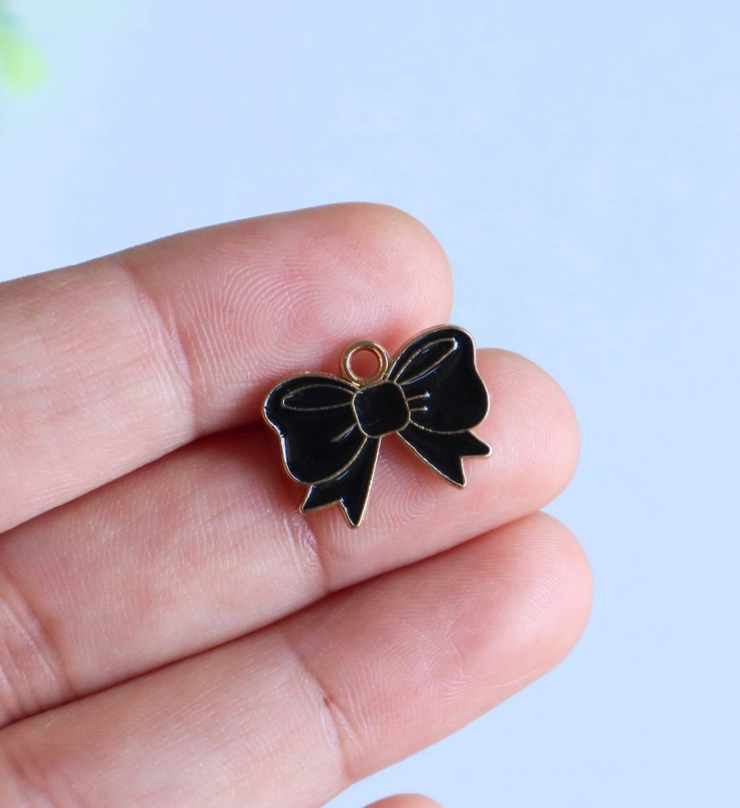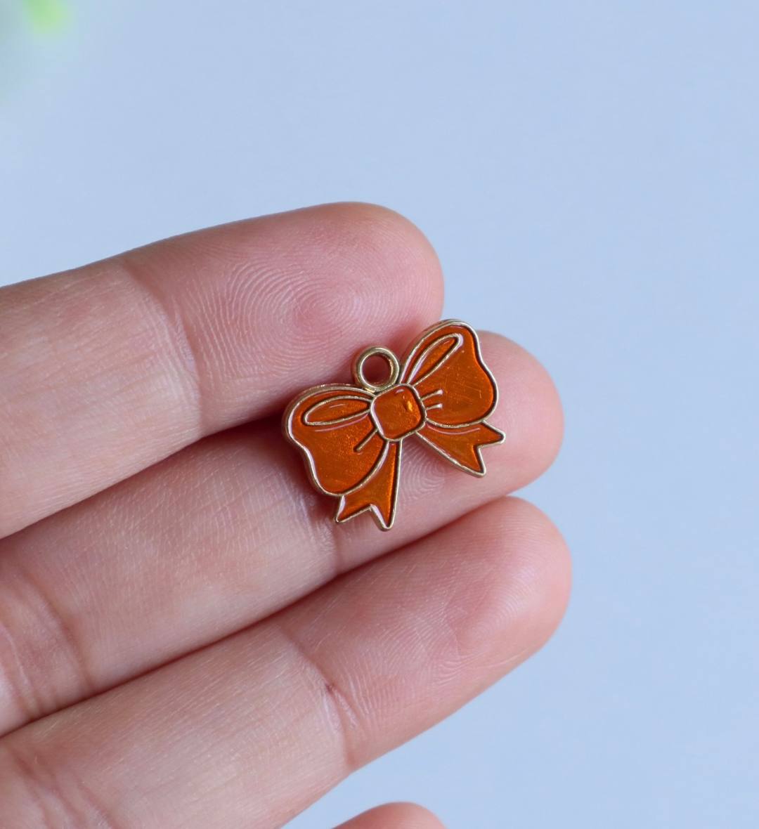 enamel bow charms, ribbon pendant charm, cute jewelry making supplies, DIY enamel pendants, colorful bow charm, gold bow pendant, handmade jewelry findings, kawaii craft charms, resin art supplies, pastel bow accessories, enamel ribbon charm, alloy jewelry charms